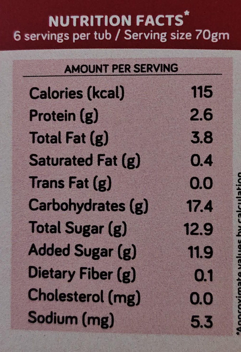 112 calories per serving, 94% fat free, Made With Khand (Muscovado sugar)