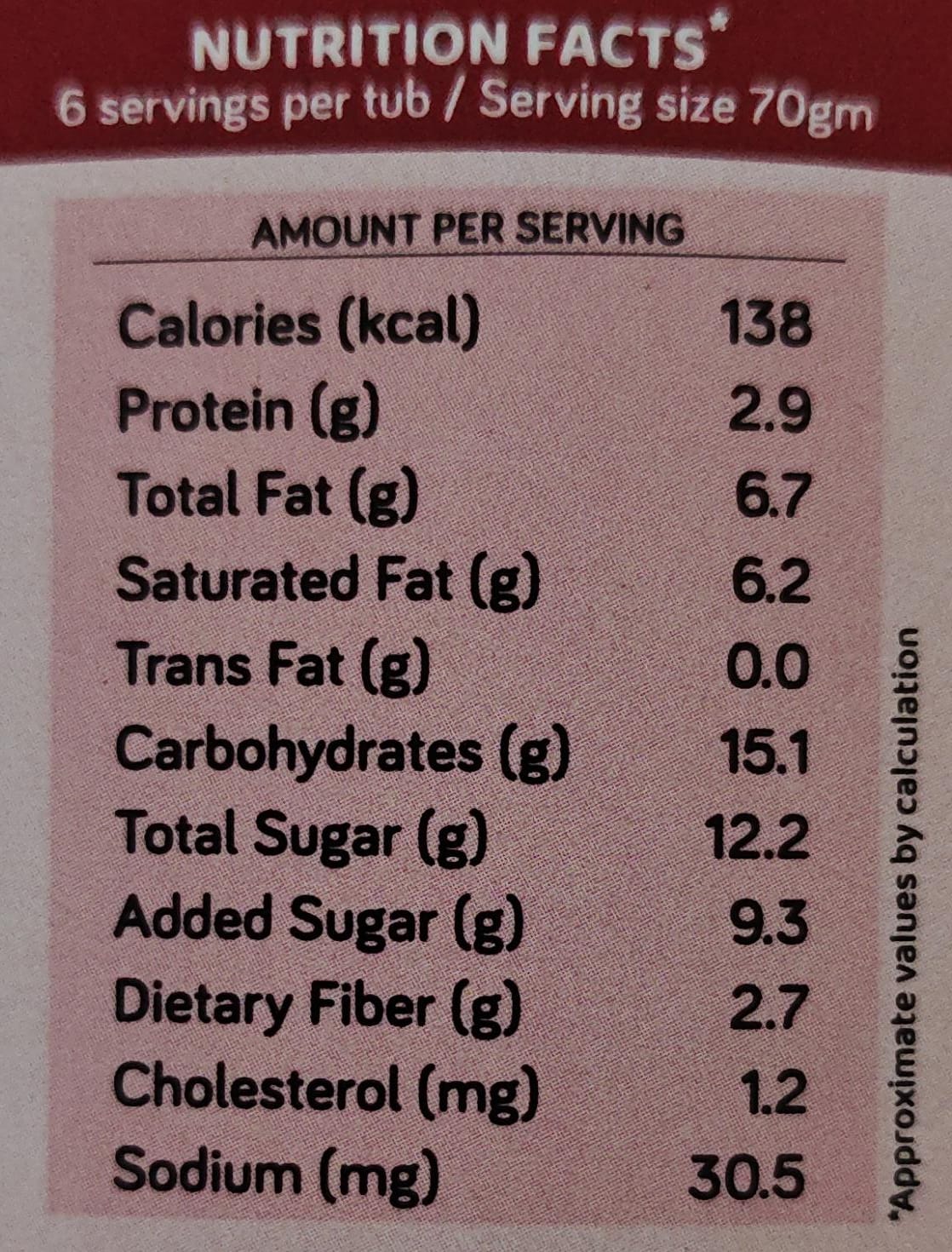 138 calories per serving, 90% fat free, Made With Khand (Muscovado sugar)