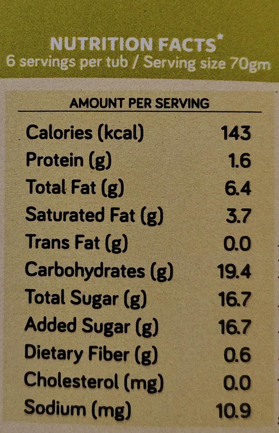 143 calories, 91% fat free, Made with Khand, 100% plant-based.