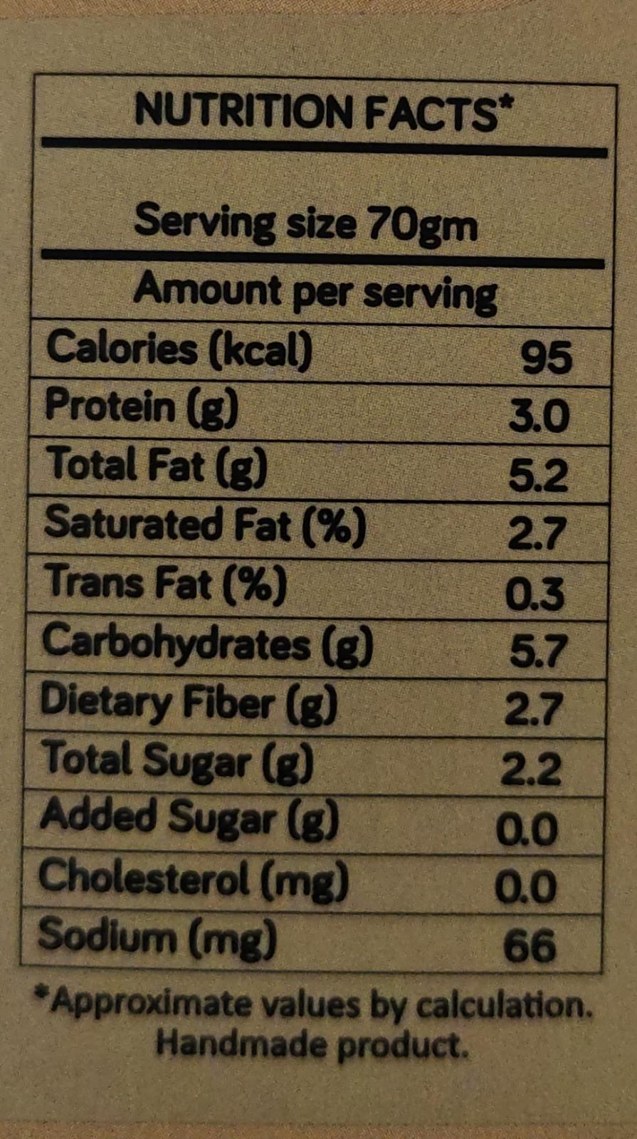 94 calories, 0% added sugar, 93% fat free. No artificial flavours, colours or preservatives.